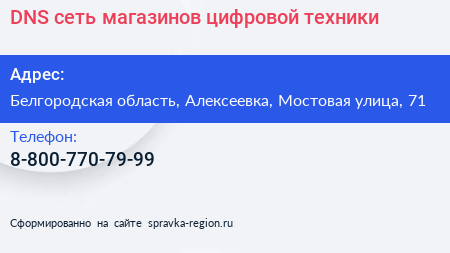 DNS, сеть магазинов цифровой техники по адресу Белгородская область, Алексеевка, Мостовая улица, 71 в дальнейшем Организация, размещена в следующих категориях: