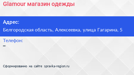 Glamour, магазин одежды по адресу Белгородская область, Алексеевка, улица Гагарина, 5 в дальнейшем Организация, размещена в следующих категориях: