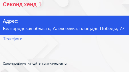 Секонд-хенд №1 по адресу Белгородская область, Алексеевка, площадь Победы, 77 в дальнейшем Организация, размещена в следующих категориях: