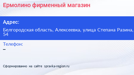 Ермолино, фирменный магазин по адресу Белгородская область, Алексеевка, улица Степана Разина, 54 в дальнейшем Организация, размещена в следующих категориях: