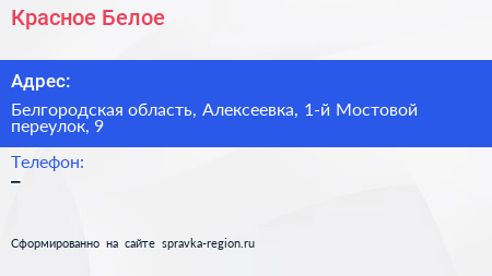 Красное & Белое по адресу Белгородская область, Алексеевка, 1-й Мостовой переулок, 9 в дальнейшем Организация, размещена в следующих категориях:
