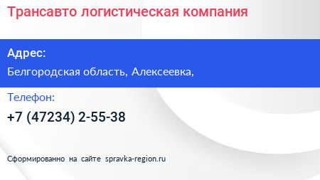 Трансавто, логистическая компания по адресу Белгородская область, Алексеевка, в дальнейшем Организация, размещена в следующих категориях: