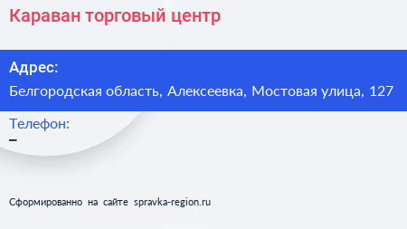 Караван, торговый центр по адресу Белгородская область, Алексеевка, Мостовая улица, 127 в дальнейшем Организация, размещена в следующих категориях: