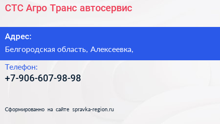 СТС Агро-Транс, автосервис по адресу Белгородская область, Алексеевка, в дальнейшем Организация, размещена в следующих категориях: