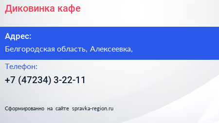 Диковинка, кафе по адресу Белгородская область, Алексеевка, в дальнейшем Организация, размещена в следующих категориях:
