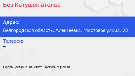 Без Катушек, ателье по адресу Белгородская область, Алексеевка, Мостовая улица, 93 в дальнейшем Организация, размещена в следующих категориях: