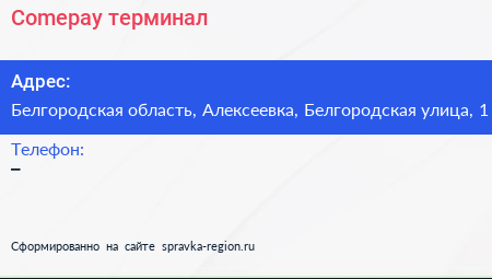 Comepay, терминал по адресу Белгородская область, Алексеевка, Белгородская улица, 1 в дальнейшем Организация, размещена в следующих категориях: