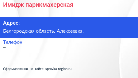 Имидж, парикмахерская по адресу Белгородская область, Алексеевка, в дальнейшем Организация, размещена в следующих категориях: