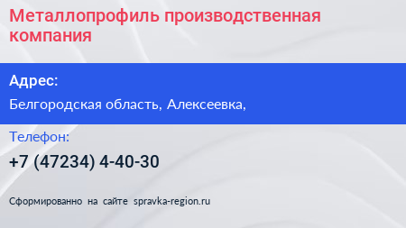 Металлопрофиль, производственная компания по адресу Белгородская область, Алексеевка, в дальнейшем Организация, размещена в следующих категориях: