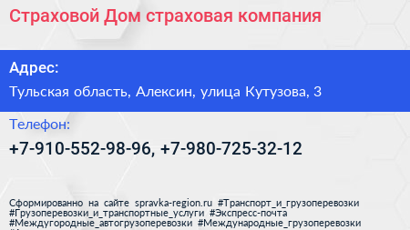 Страховой Дом, страховая компания по адресу Тульская область, Алексин, улица Кутузова, 3 в дальнейшем Организация, размещена в следующих категориях:
