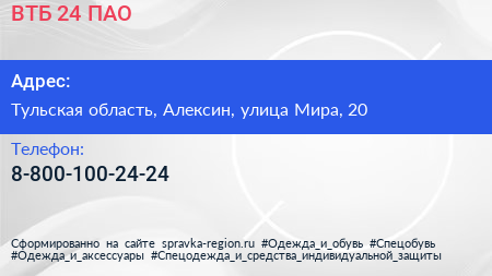 ВТБ 24, ПАО по адресу Тульская область, Алексин, улица Мира, 20 в дальнейшем Организация, размещена в следующих категориях:
