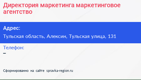 Директория маркетинга, маркетинговое агентство по адресу Тульская область, Алексин, Тульская улица, 131 в дальнейшем Организация, размещена в следующих категориях: