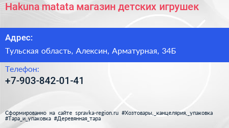 Hakuna-matata, магазин детских игрушек по адресу Тульская область, Алексин, Арматурная, 34Б в дальнейшем Организация, размещена в следующих категориях: