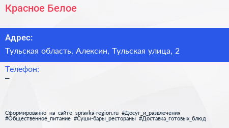 Красное&Белое по адресу Тульская область, Алексин, Тульская улица, 2 в дальнейшем Организация, размещена в следующих категориях: