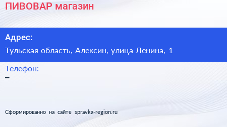 ПИВОВАР, магазин по адресу Тульская область, Алексин, улица Ленина, 1 в дальнейшем Организация, размещена в следующих категориях: