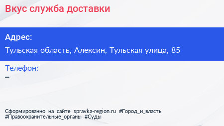 Вкус, служба доставки по адресу Тульская область, Алексин, Тульская улица, 85 в дальнейшем Организация, размещена в следующих категориях: