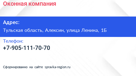 Оконная компания по адресу Тульская область, Алексин, улица Ленина, 1Б в дальнейшем Организация, размещена в следующих категориях: