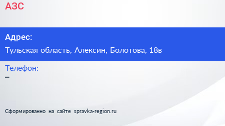 АЗС по адресу Тульская область, Алексин, Болотова, 18в в дальнейшем Организация, размещена в следующих категориях: