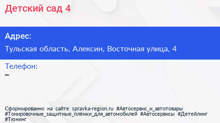Детский сад №4 по адресу Тульская область, Алексин, Восточная улица, 4 в дальнейшем Организация, размещена в следующих категориях: