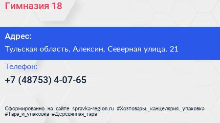 Гимназия №18 по адресу Тульская область, Алексин, Северная улица, 21 в дальнейшем Организация, размещена в следующих категориях: