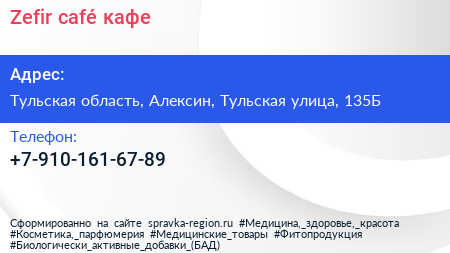 Zefir café, кафе по адресу Тульская область, Алексин, Тульская улица, 135Б в дальнейшем Организация, размещена в следующих категориях: