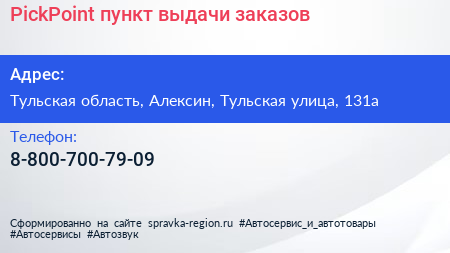 PickPoint, пункт выдачи заказов по адресу Тульская область, Алексин, Тульская улица, 131а в дальнейшем Организация, размещена в следующих категориях: