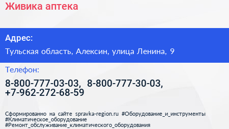 Живика, аптека по адресу Тульская область, Алексин, улица Ленина, 9 в дальнейшем Организация, размещена в следующих категориях: