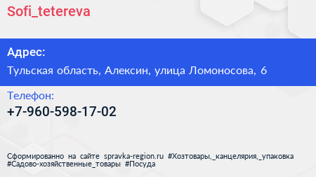 Sofi_tetereva по адресу Тульская область, Алексин, улица Ломоносова, 6 в дальнейшем Организация, размещена в следующих категориях: