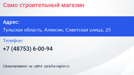 Само, строительный магазин по адресу Тульская область, Алексин, Советская улица, 25 в дальнейшем Организация, размещена в следующих категориях: