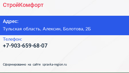 СтройКомфорт по адресу Тульская область, Алексин, Болотова, 2Б в дальнейшем Организация, размещена в следующих категориях: