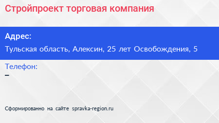 Стройпроект, торговая компания по адресу Тульская область, Алексин, 25 лет Освобождения, 5 в дальнейшем Организация, размещена в следующих категориях: