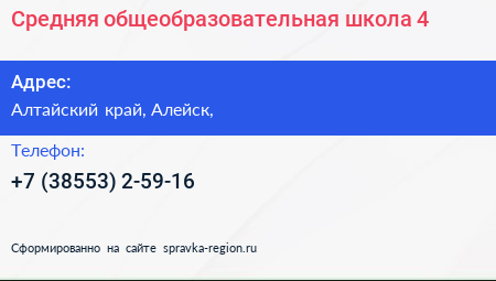 Средняя общеобразовательная школа №4 по адресу Алтайский край, Алейск, в дальнейшем Организация, размещена в следующих категориях: