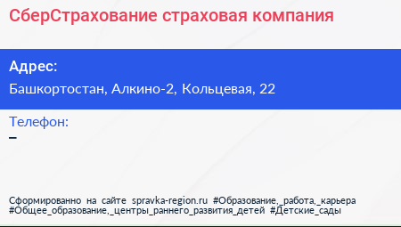 СберСтрахование, страховая компания по адресу Башкортостан, Алкино-2, Кольцевая, 22 в дальнейшем Организация, размещена в следующих категориях: