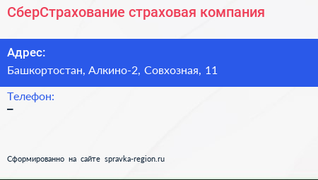 СберСтрахование, страховая компания по адресу Башкортостан, Алкино-2, Совхозная, 11 в дальнейшем Организация, размещена в следующих категориях: