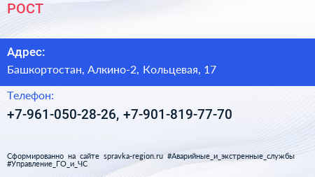 РОСТ по адресу Башкортостан, Алкино-2, Кольцевая, 17 в дальнейшем Организация, размещена в следующих категориях: