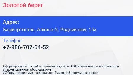 Золотой берег по адресу Башкортостан, Алкино-2, Родниковая, 15а в дальнейшем Организация, размещена в следующих категориях: