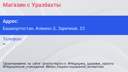 Магазин, с. Уразбахты по адресу Башкортостан, Алкино-2, Заречная, 15 в дальнейшем Организация, размещена в следующих категориях: