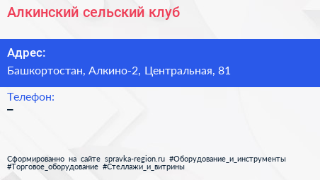 Алкинский сельский клуб по адресу Башкортостан, Алкино-2, Центральная, 81 в дальнейшем Организация, размещена в следующих категориях: