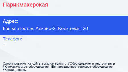 Парикмахерская по адресу Башкортостан, Алкино-2, Кольцевая, 20 в дальнейшем Организация, размещена в следующих категориях: