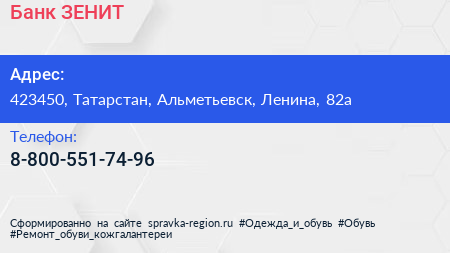 Банк ЗЕНИТ по адресу 423450, Татарстан, Альметьевск, Ленина, 82а в дальнейшем Организация, размещена в следующих категориях:
