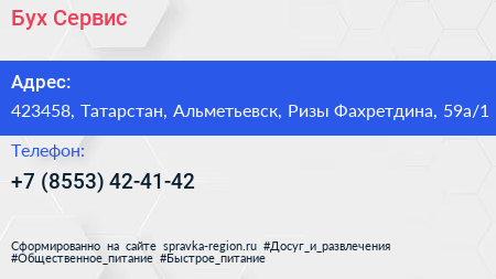 Бух-Сервис по адресу 423458, Татарстан, Альметьевск, Ризы Фахретдина, 59а/1 в дальнейшем Организация, размещена в следующих категориях: