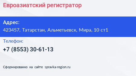 Евроазиатский регистратор по адресу 423457, Татарстан, Альметьевск, Мира, 10 ст1 в дальнейшем Организация, размещена в следующих категориях: