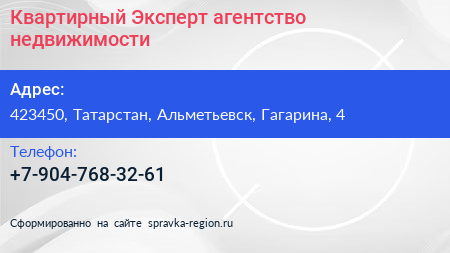 Квартирный Эксперт, агентство недвижимости по адресу 423450, Татарстан, Альметьевск, Гагарина, 4 в дальнейшем Организация, размещена в следующих категориях: