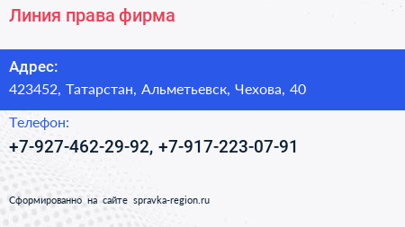 Линия права, фирма по адресу 423452, Татарстан, Альметьевск, Чехова, 40 в дальнейшем Организация, размещена в следующих категориях: