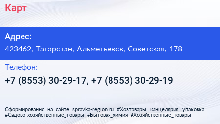 Карт по адресу 423462, Татарстан, Альметьевск, Советская, 178 в дальнейшем Организация, размещена в следующих категориях: