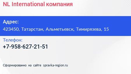 NL International, компания по адресу 423450, Татарстан, Альметьевск, Тимирязева, 15 в дальнейшем Организация, размещена в следующих категориях: