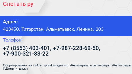 Слетать.ру по адресу 423450, Татарстан, Альметьевск, Ленина, 203 в дальнейшем Организация, размещена в следующих категориях: