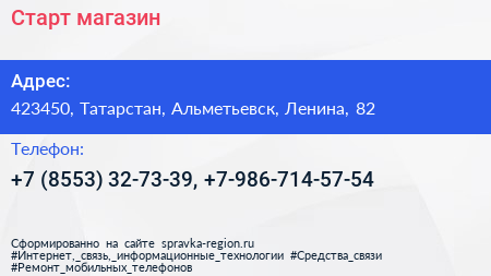 Старт, магазин по адресу 423450, Татарстан, Альметьевск, Ленина, 82 в дальнейшем Организация, размещена в следующих категориях: