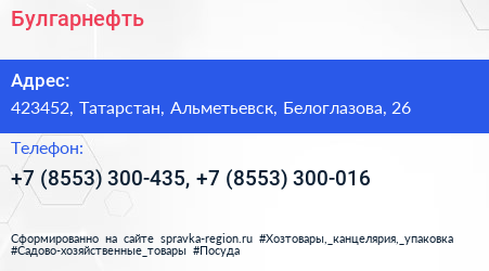 Булгарнефть по адресу 423452, Татарстан, Альметьевск, Белоглазова, 26 в дальнейшем Организация, размещена в следующих категориях: