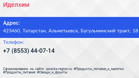 Иделхим по адресу 423460, Татарстан, Альметьевск, Бугульминский тракт, 18 в дальнейшем Организация, размещена в следующих категориях: